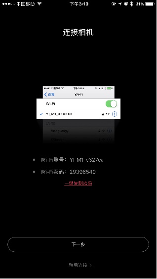 j. iphone user that has not upgraded to iOS 10 is redirected automatically to Wi-Fi Setting page, then please manually select camera's Wi-Fi hotspot (such as YI_M1_xxxxxx), long press on the password box and select Paste.